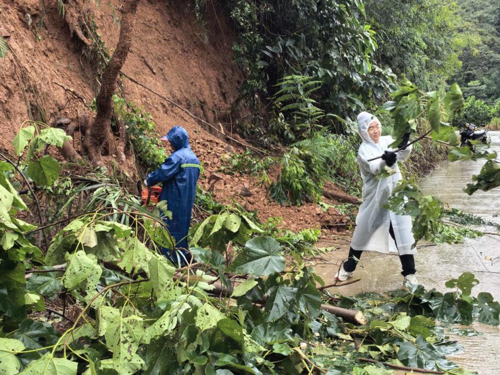 “必须让孩子们平安回家!”怀着这样的信念,韦义龙带领队员们冒着危险,用油锯切割倒下的树木,一铲一铲地清理土石。汗水混合着雨水,他们的衣服早已湿透,但手中的工具从未停歇。
