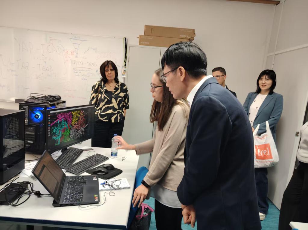 IPG研究中心的研究生向代表团介绍自己的研究内容