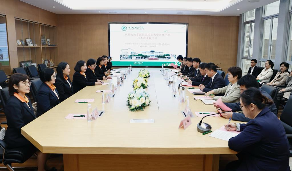 10月22日至27日,泰国拉差塔尼大学护理学院院长苏琵达·瑟拉瓦塔纳古一行到我校访问交流,我校在国际会议中心外事会议室召开交流会。学校党委副书记、校长黄龙坚出席会议,泰国拉差塔尼大学护理学院教师代表、我校护理学院、国际合作与交流中心及相关部门负责人参加会议。