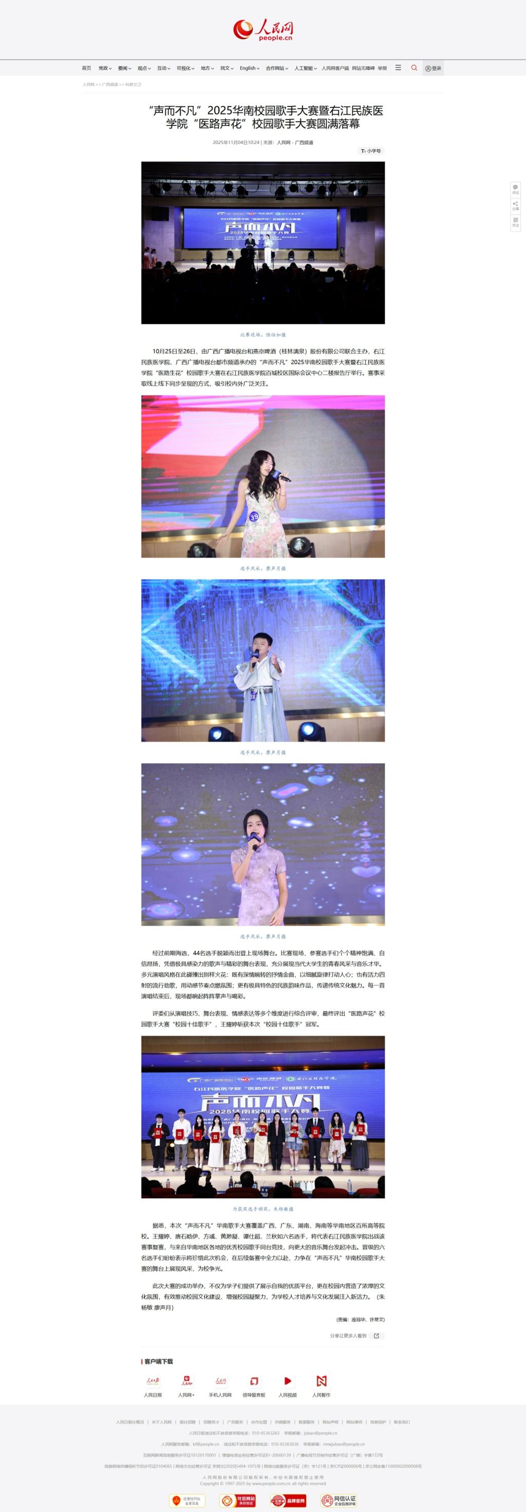 【媒体看右医】人民网:“声而不凡”2025华南校园歌手大赛暨右江民族医学院“医路声花”校园歌手大赛圆满落幕