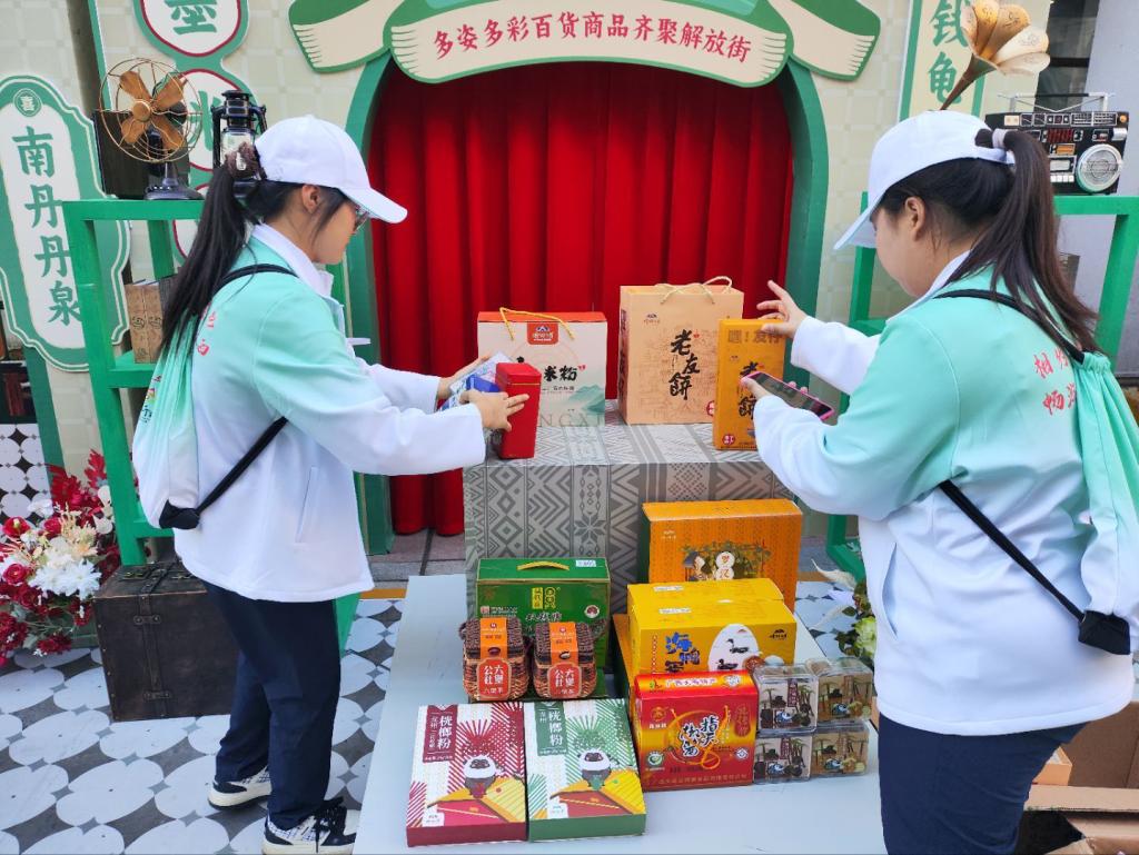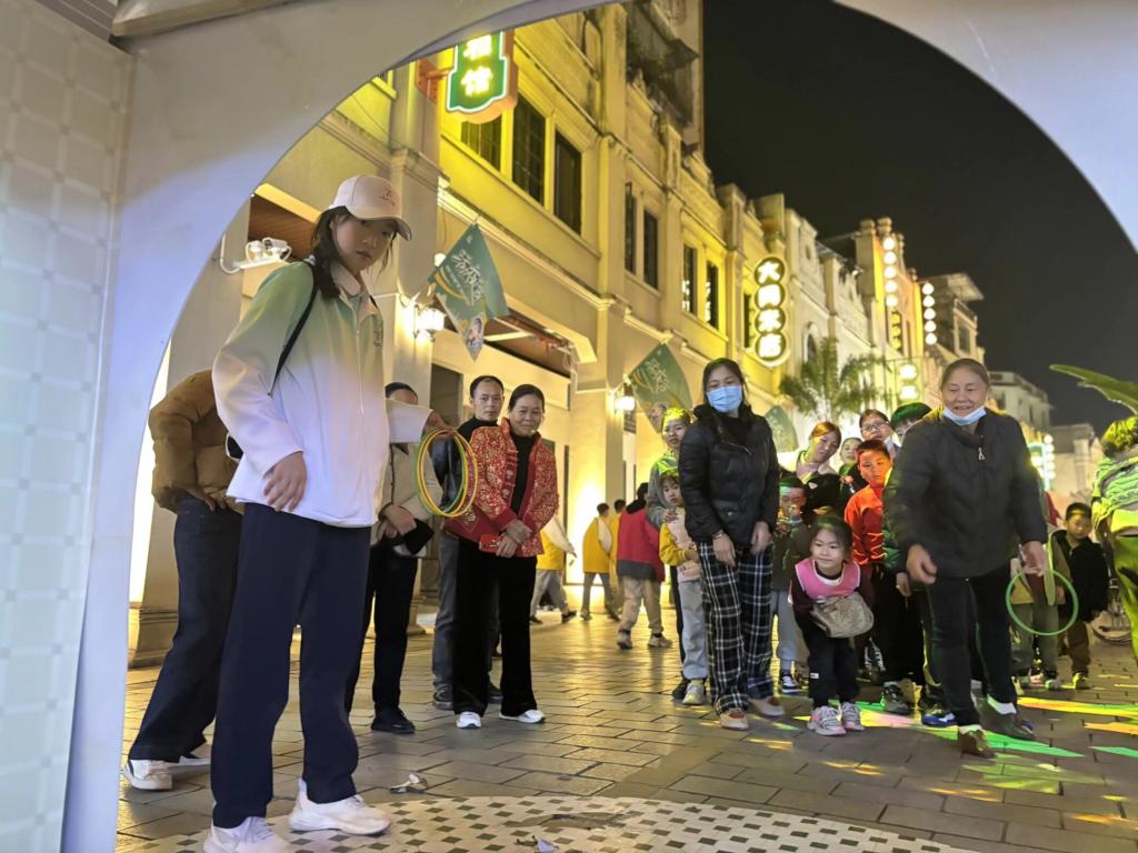 志愿者在“活力夜”解放街现场引导市民参与活动