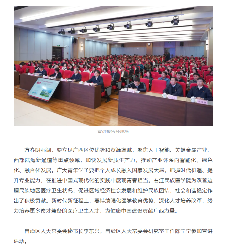 报道链接:方春明到右江民族医学院宣讲党的二十届四中全会精神