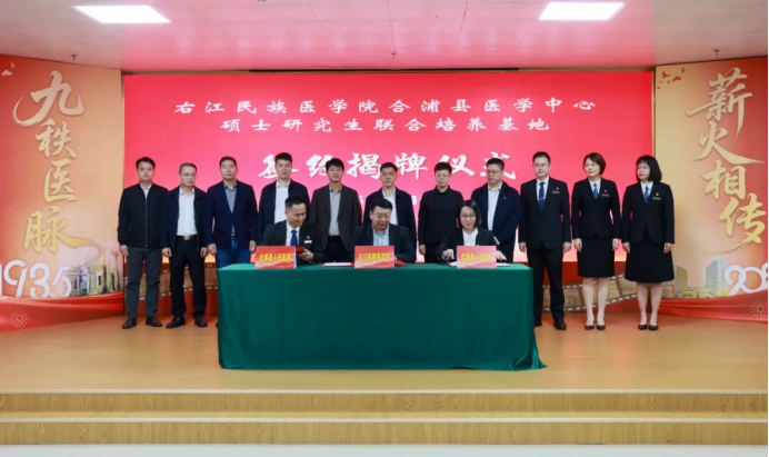 12月10日,右江民族医学院分别与博白县人民政府、合浦县人民政府签订合作协议并举行揭牌仪式,共同推动优质医疗教育资源下沉基层,强化校地协同育人与医疗服务、科学研究能力提升。学校党委副书记、校长黄龙坚出席会议,学校党委常委、副校长王俊利代表学校与两地政府现场签订协议书。
