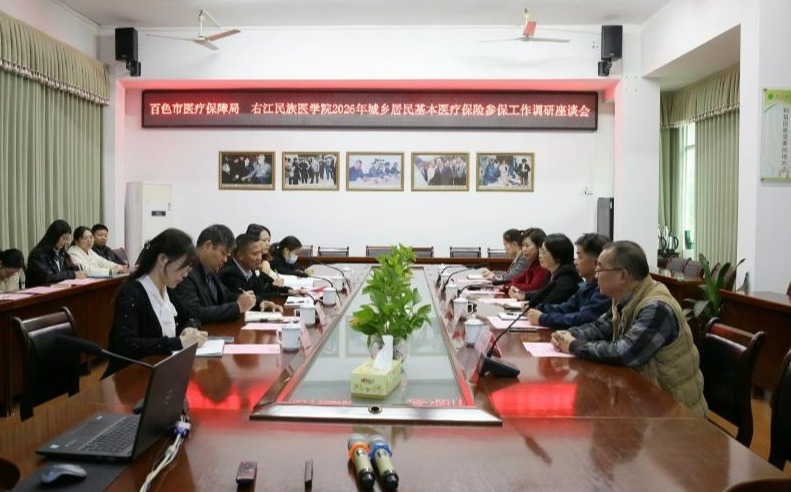 12月9日,百色市医疗保障局局长何璇带队到我校开展调研,双方就2026年度城乡居民基本医疗保险参保工作召开专题座谈会,共话政策落实、共商服务优化,切实筑牢学生医疗保障防线。百色市医疗保障局、右江区医保局相关负责人,学校学生工作处、后勤基建处及各二级学院学生工作负责人参会。