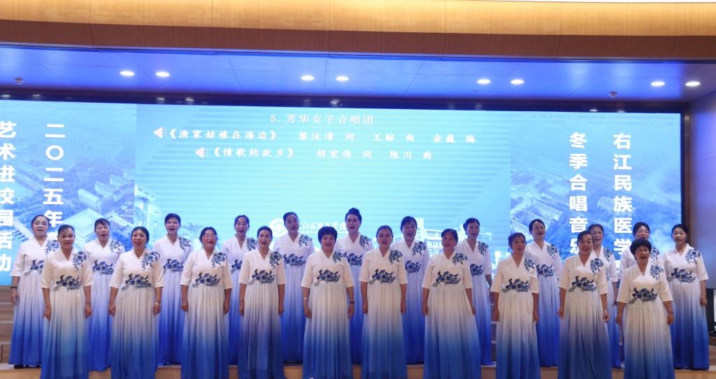12月27日,百色市高雅艺术进校园活动——右江民族医学院冬季合唱音乐会在我校国际会议中心二楼学术报告厅圆满落幕。本次活动由百色市音乐家协会主办,右江区委宣传部、鑫和声艺术学校协办,右江民族医学院承办,吸引了校内外11支合唱队伍同台献艺,为师生们带来了一场精彩绝伦的视听盛宴。