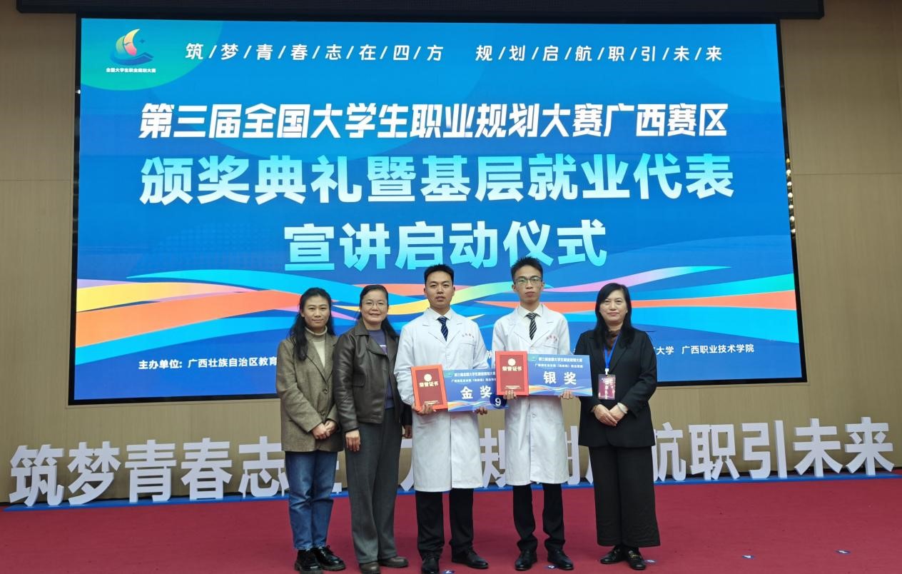 1月10日至11日,第三届全国大学生职业规划大赛广西赛区总决赛在南宁师范大学明秀校区圆满落幕。在就业赛道高教研究生组的激烈角逐中,神经外科专硕焦晓驰同学勇夺金奖,护理学专硕刘奕慷同学斩获银奖。