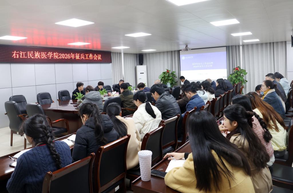 1月9日,我校在百城校区7栋13楼第二会议室召开2026年征兵工作会议。学校党委副书记赵丽娟出席会议,党委武装部、党委学生工作部、教务处、招生与就业指导服务中心、团委等部门主要负责人,各二级学院党委负责人、2026届应届毕业班辅导员参加会议。