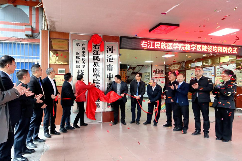 我校与河池市中医医院缔结教学医院揭牌仪式。