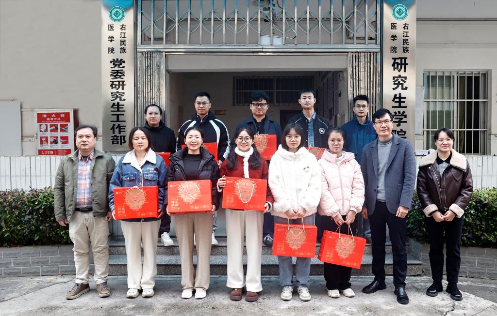 解继胜为留校研究生送上精心准备的慰问礼包。