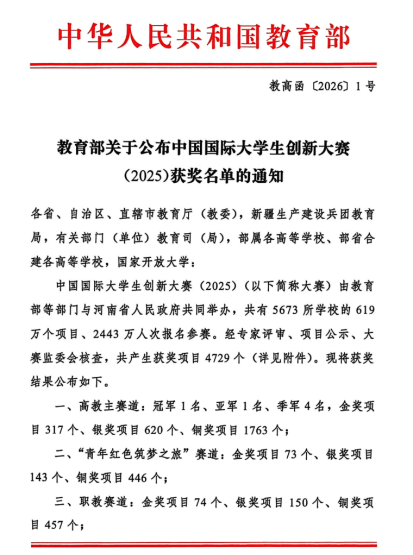中国国际大学生创新大赛是由教育部等12个中央部委与省级政府联合主办的国家级创新创业赛事,也是国际影响力最大的大学生创新创业大赛之一。本届大赛共吸引来自161个国家和地区的619万个项目报名参赛,参赛人次高达2443万。我校在本次大赛中报名参赛数量达6360项,7个项目入围“金种子”项目训练营,最终6个项目在全国赛场脱颖而出斩获铜奖。