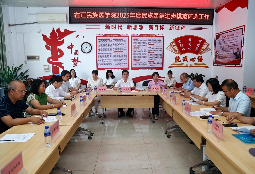 就进一步做好学校民族团结工作,铸牢中华民族共同体意识,黄龙坚强调,要在“融”字上下功夫,将民族团结与医学教育深度融合,讲好“民族团结+医学”故事,将民族医药、医患沟通、健康服务融入育人全过程;要在“育”字上做文章,构建有形有感有效的育人体系,用好红色资源,关心各民族师生需求,让团结氛围遍布校园;要在“特”字上求突破,打造具有右医辨识度的创新品牌,把服务送到民族地区群众身边,提升工作影响力与辨识度。