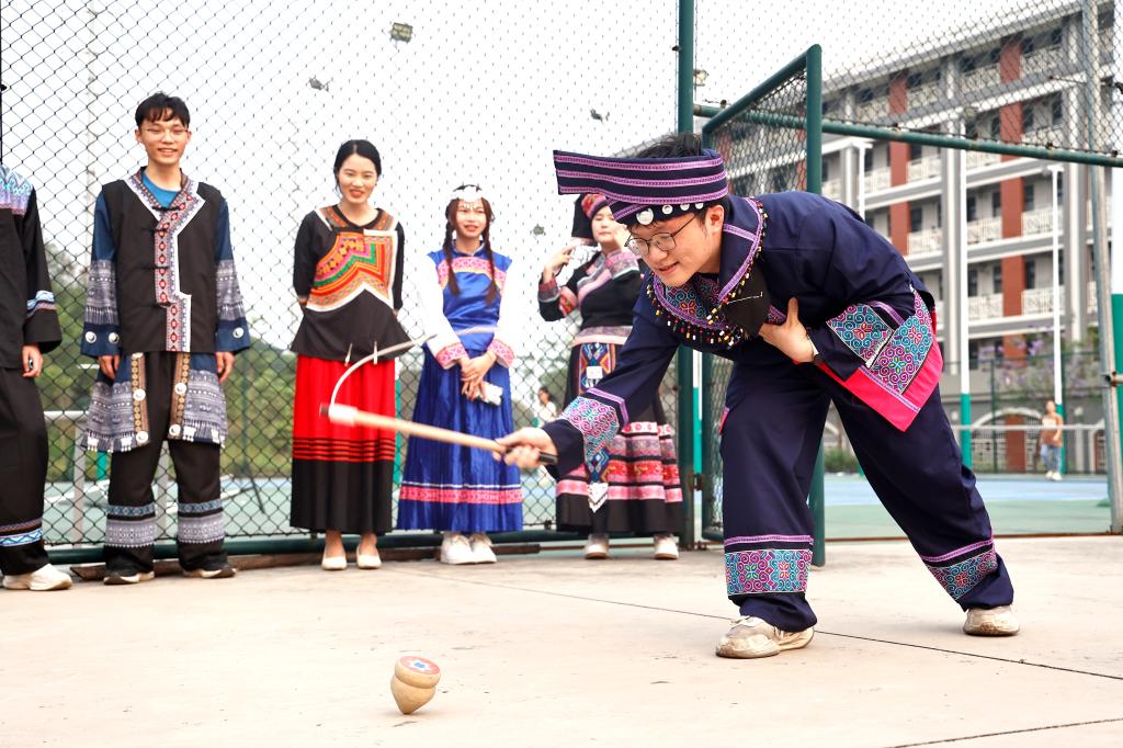 活动现场设置五色糯米饭、艾叶糍粑、茶叶蛋、养生茶等特色美食体验区,以及急救技能挑战、护牙知识闯关、抛绣球、竹竿舞、高脚竞速、滚铁环、陀螺、射箭、香囊与麽乜手工制作等十余项民俗与趣味互动项目。同学们积极参与各项活动。24临本11班的杨语嫣接受采访时说道:“我在这次活动中体验到了很多民俗活动,感到很新奇,每个活动都很有民族特色,这让我更加了解了我国的多元文化,也增强了民族团结的意识。”