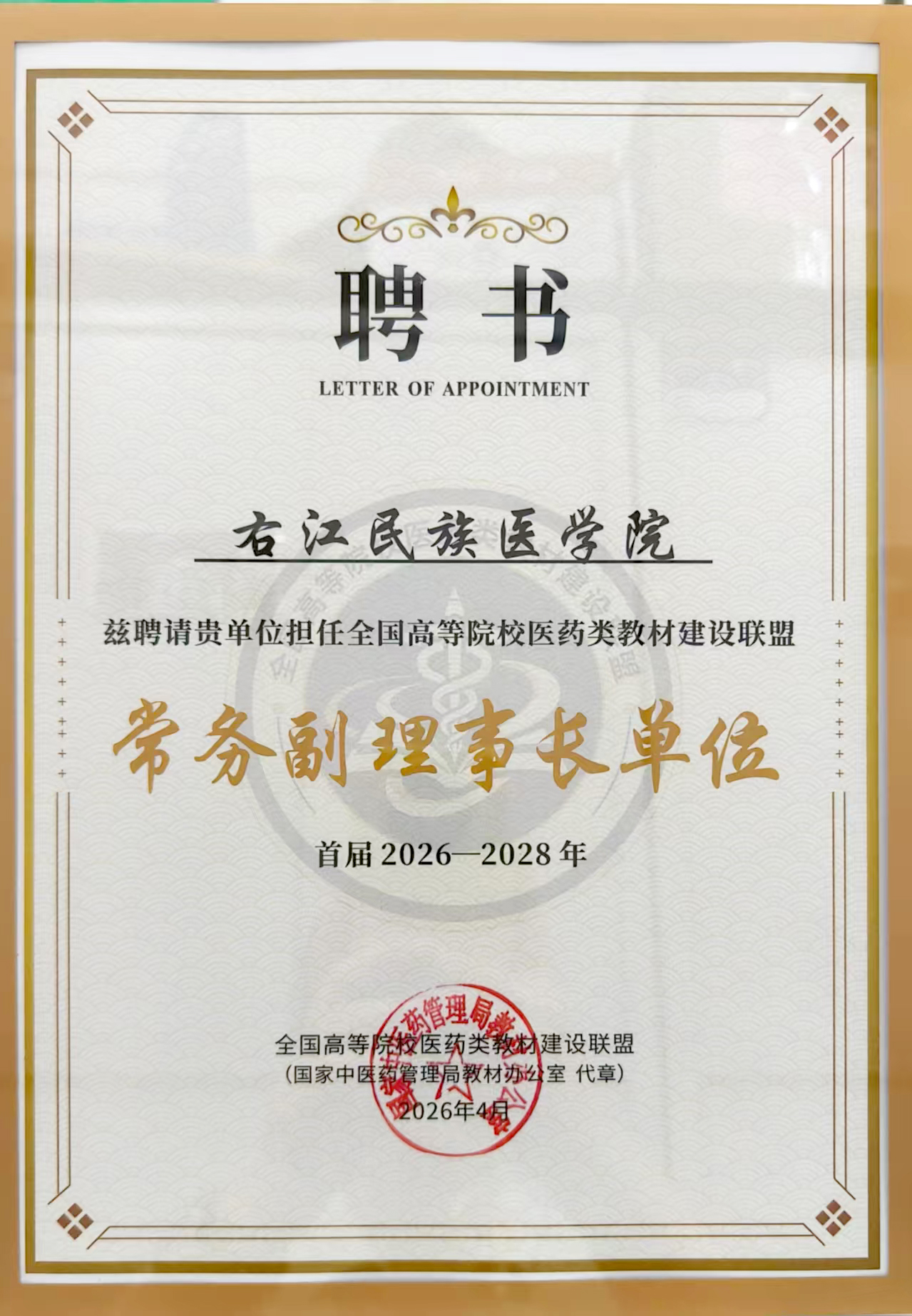 学校将依托联盟优质平台,充分发挥在民族医学、边疆医疗卫生人才培养等方面的特色优势,深度参与联盟建设与全国高等医药教育规划教材创新研发,为构建高质量医药教材体系、助力国家医药人才培养贡献右医力量。