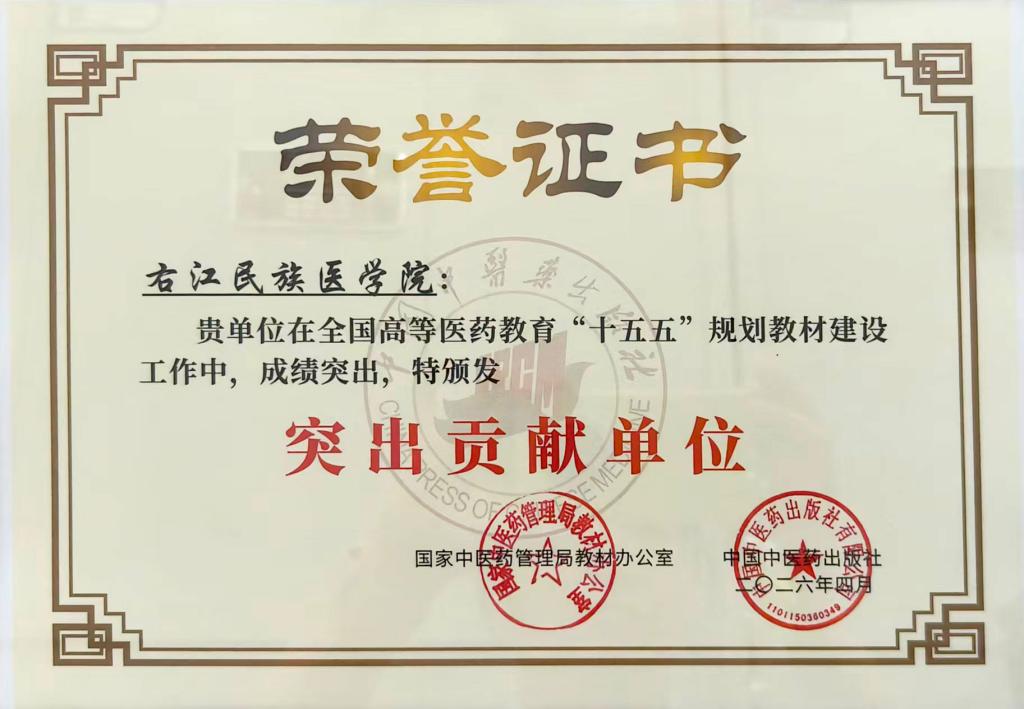 经联盟审议,右江民族医学院当选为联盟常务副理事长单位,并荣获“突出贡献单位”称号。首届联盟共设立2个理事长单位、2个常务副理事长单位。黄龙坚代表学校接受牌匾与荣誉证书。同时,教务处处长漆光紫获聘为全国高等学校医药类教材建设联盟副秘书长,任期2026—2028年。