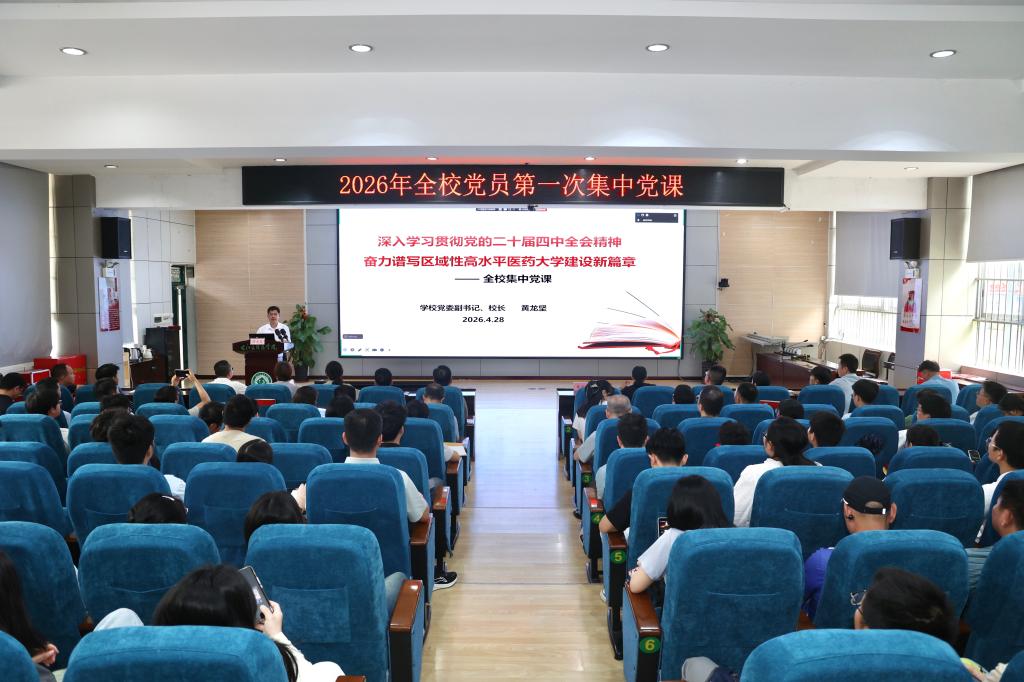 4月28日,学校党委副书记、校长黄龙坚为全校党员讲授“深入学习贯彻党的二十届四中全会精神,奋力谱写区域性高水平医药大学建设新篇章”党课。全体党员通过线上、线下等方式参加学习。