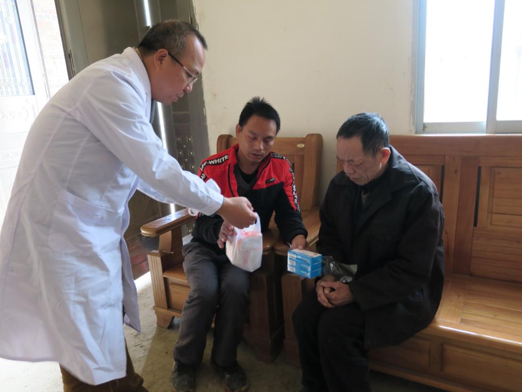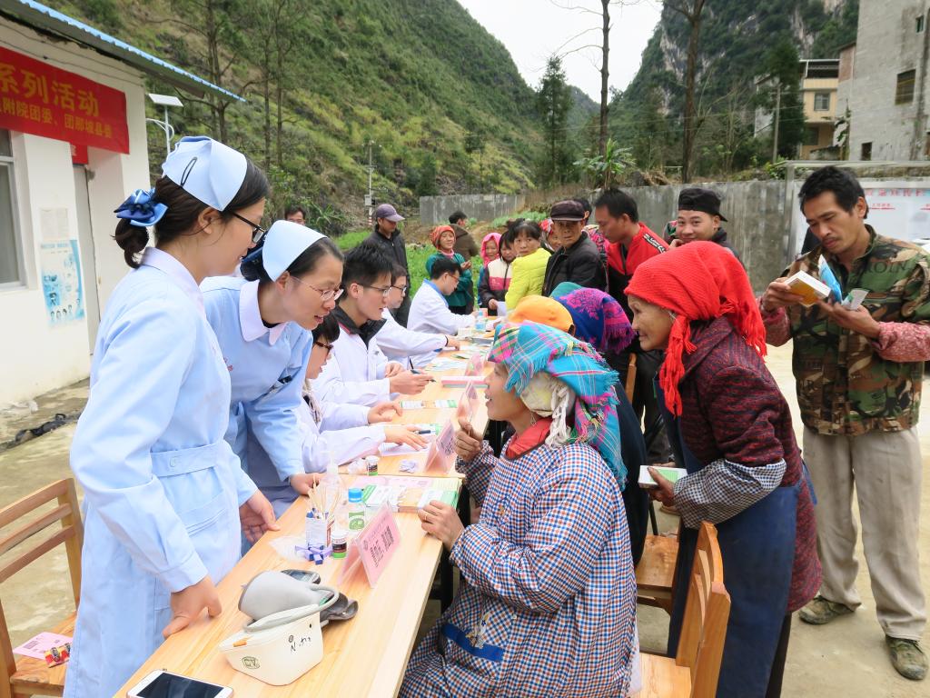 上午8点,陈文成副书记一行冒着严寒驱车3个小时风尘仆仆分别前往那坡县民族初级中学,参加了2019年“青春自护.平安春节”青少年自护教育和迎春慰问活动,与该校的研究生支教团成员和师生代表进行座谈。座谈活动结束后,陈文成副书记一行顾不得休息片刻,立即率医院青年医疗服务队奔赴那坡县城厢镇合群村巴东屯、果问屯,为当地的群众进行爱心慰问、义诊服务、健康检查活动。我院急诊科黄顺忠副教授、药剂科周世友副教授、血液风湿内科左瑶医师、肛肠外科李华医师、重症医学科杨成敏医师等医疗专家,细心地为每一位前来就诊的儿童、村民进行检查,量血压、把脉问诊、体格检查、详细耐心的回答村民的咨询,免费为群众发放对症药品,并认真交代服药剂量和注意事项,从健康饮食和科学用药等方面给予了认真指导,为那坡县合群村的村民带来了优质医疗服务和爱心温暖。
