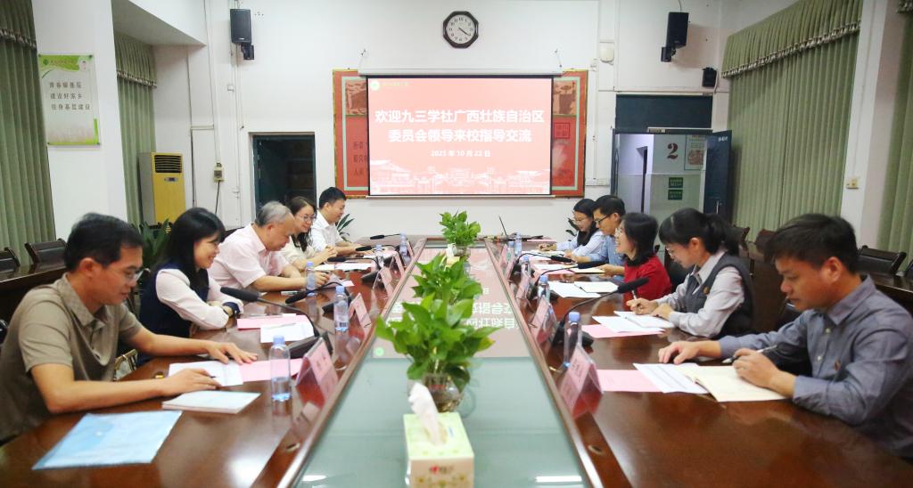 10月22日下午,广西壮族自治区人大民族委员会副主任、九三学社广西区委专职副主委葛春啟率调研组一行莅临我校,就九三学社基层组织建设等工作开展指导与交流。我校党委办公室主任、统战部部长王文霞及相关部门同志陪同调研。