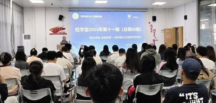 11月5日下午,医学技术与人工智能学院检学堂2025年第十一期“职引未来 企航青春”金域企业宣讲交流会在百城校区顺利举行。本次活动邀请到广西金域医学检验实验室有限公司人力资源部经理梁诚担任主讲人,学院党委副书记梁楚晗出席并致辞,2026届部分毕业生、2023级医学检验技术本科班学生参与活动。