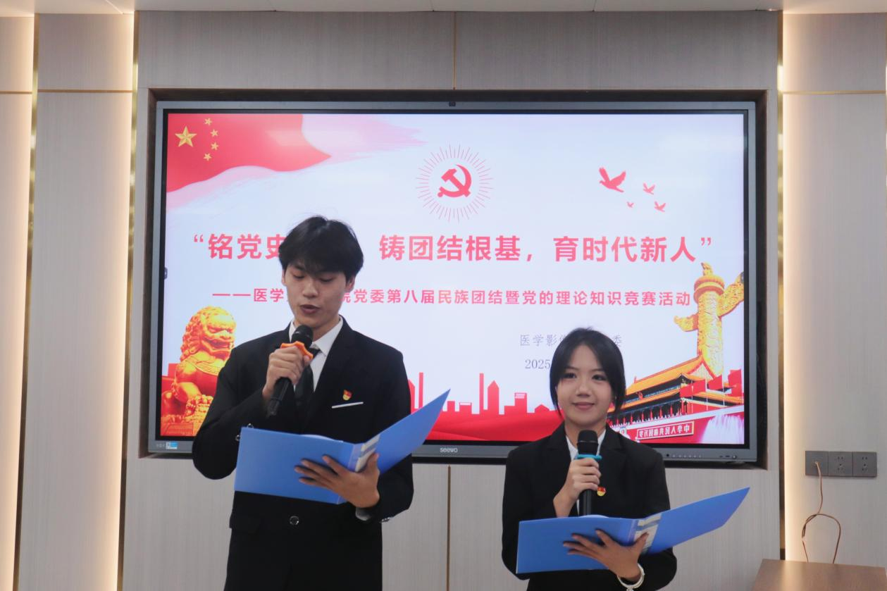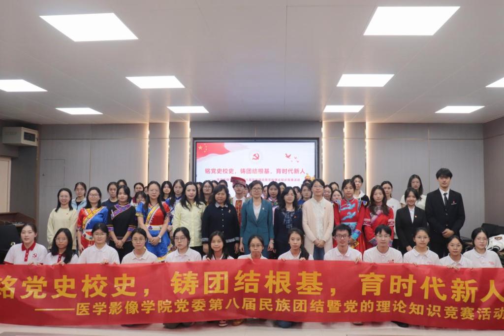 为扎实推进铸牢中华民族共同体意识教育,11月14日下午,医学影像学院党委在百城校区护理学院211教室举办“铭党史校史,铸团结根基,育时代新人”第八届民族团结暨党的理论知识竞赛活动。由党支部党员、发展对象、入党积极分子和入党申请人组成的多支参赛队伍同台竞技,现场气氛热烈高涨。