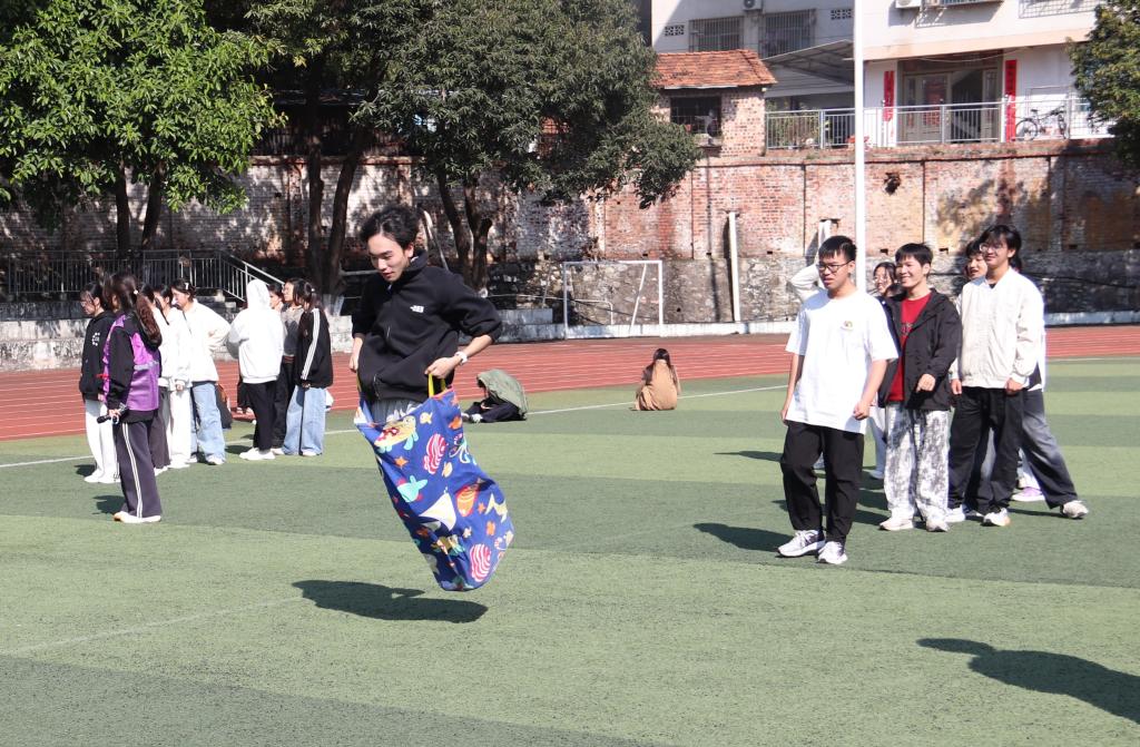 随后,全体新生在主持人与引导员的组织下,分组参与了“同心击鼓”“一圈到底”“跳袋接力”以及“无敌风火轮”等四项团队合作竞赛。