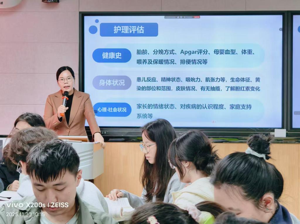 为深入推进虚拟教研室共建共享、促进区域高校护理专业课程教学协同发展,2025年11月30日上午,我校护理学院与赣南医科大学护理学院、广东药科大学护理学院通过智慧教室共同开展了《儿科护理学》课程“同上一堂课”教学活动。本次授课主题为“新生儿溶血病”,授课班级为2023级护理学本科3班,由妇儿护理学教研室黄芝蓉老师负责核心内容讲授并组织学生参与示范教学。