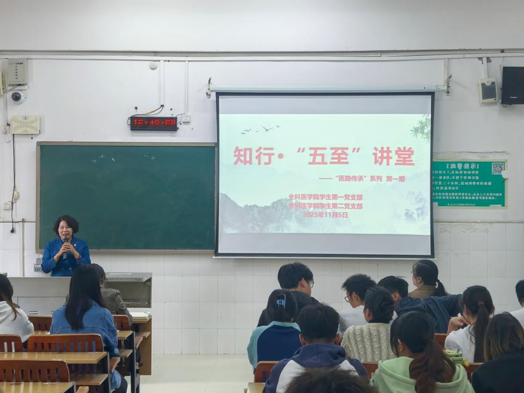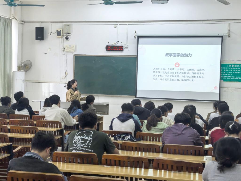 为全面深化学生的职业素养,全科医学院“五至”讲堂正式推出“叙事之声”与“医路传承”两大系列讲座,分别聚焦叙事医学实践与医者成长路径。11月5日,首讲在6栋407教室顺利举行,近40名师生代表参与。