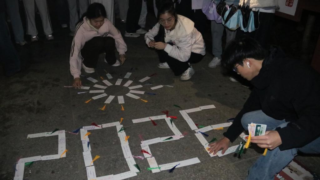 晨跑结束后,学院还精心设置了祝福漂流瓶、民族团结三行诗创作等特色活动。在祝福漂流瓶活动中,同学们写下新年祝福,随后随机抽取他人写下的祝福卡片,完成温暖的祝福交换。民族团结三行诗创作环节,则要求同学们围绕“铸牢中华民族共同体意识”主题,现场创作三行短诗,同学们纷纷领取诗笺,书写对民族团结的真挚感悟与美好祝愿。