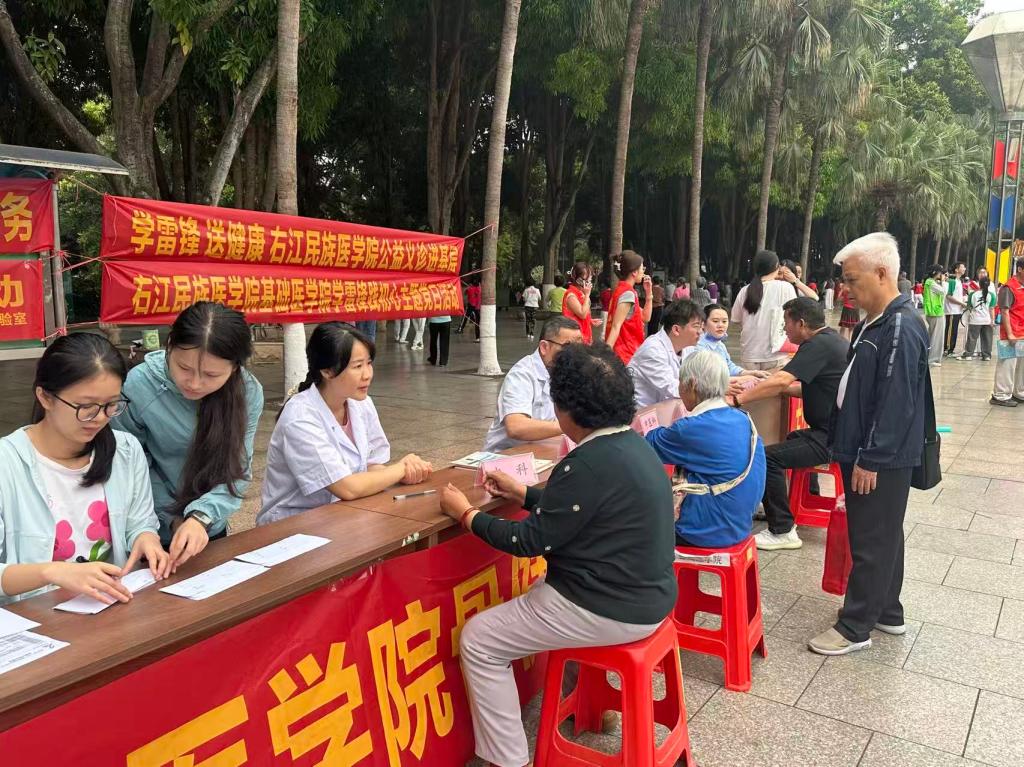 为大力弘扬雷锋精神和“奉献、友爱、互助、进步”的志愿服务精神,充分发挥医学院校专业优势,强化党建引领作用,把优质、便捷的医疗服务送到群众身边,3月29日,右江民族医学院党委统战部和基础医学院党委联合以“学雷锋践初心 义诊服务暖民心”为主题,组织多支专业医疗团队与师生志愿者走进百色市人民公园,开展学雷锋主题党日义诊志愿服务活动,以实际行动践行医者初心使命,用专业守护群众健康。