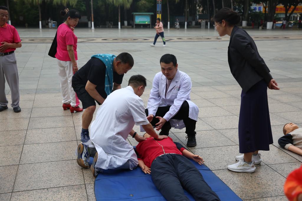手法协会的志愿者们使用专业的手法技巧为前来就诊的群众放松肌肉、缓解疲劳、舒缓压力,志愿者用双手传递着温暖和舒适,为群众送上一份特殊的关爱与疗愈。另外志愿者们还为市民们普及心肺复苏等急救知识,增添了群众应急救护意识和技能。