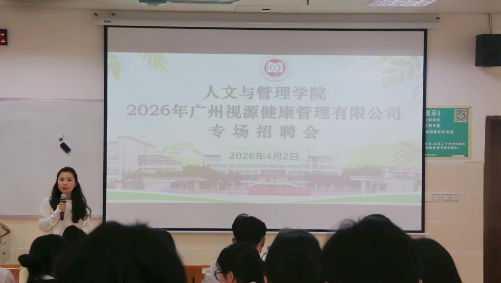4月2日上午,广州视源健康管理有限公司专场招聘宣讲会在我校百城校区举行。人文与管理学院师生代表,企业健康管理部门相关负责人参加宣讲会。