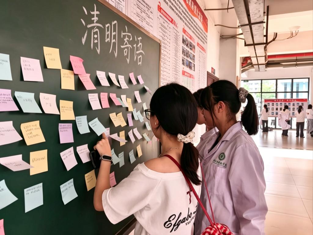 在祭奠中,全体师生肃立默哀一分钟,向所有无私奉献的大体老师致以最深切的哀思与敬意。默哀结束后,师生们认真写下对“无语良师”的感恩、追思与祝愿,将一张张承载心意的卡片张贴在纪念展板上,以朴素方式传递敬意,让感恩与缅怀定格心间。