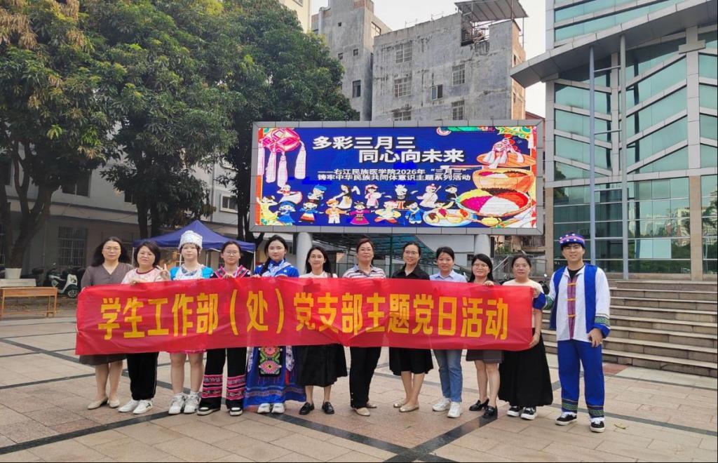 为弘扬中华优秀传统文化,铸牢中华民族共同体意识,4月14日下午,学生工作部(处)党支部在百城校区大医广场开展“多彩三月三 同心向未来”主题文化活动。部门全体党员干部及学校医韵主持社、心理学协会、宿管会学生代表共同参与。