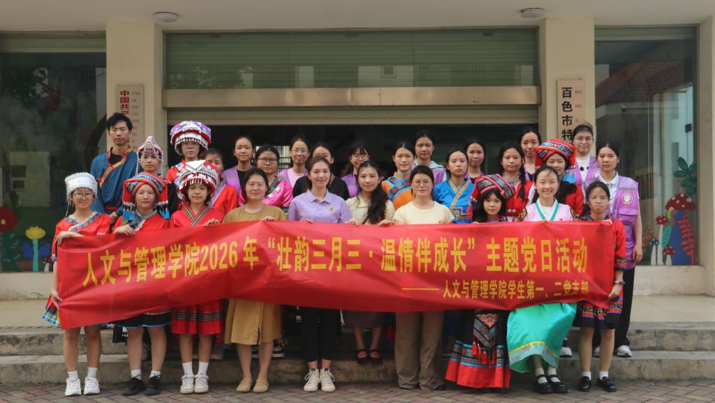 4月15日下午,人文与管理学院学生组织师生党员代表走进百色市特殊教育学校,开展“壮韵三月三 温情伴成长”主题党日活动。