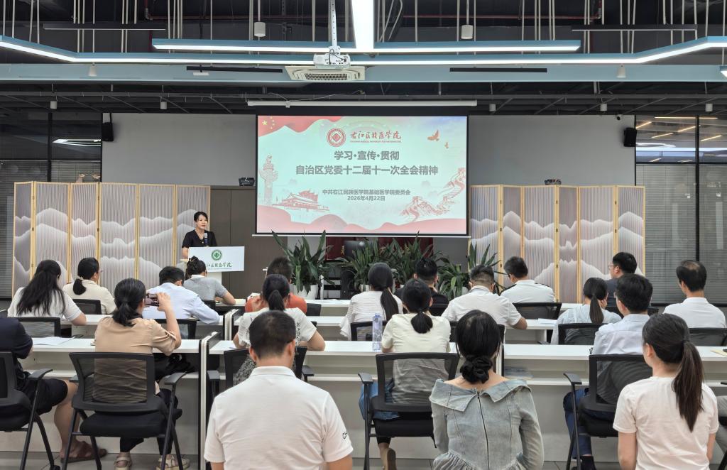 近日,基础医学院组织召开专题学习会议,集中传达学习自治区党委十二届十一次全会精神。学院党委书记宾晓芸主持会议并作专题宣讲,全院各党支部书记、支部委员及全体行政管理人员参会。
