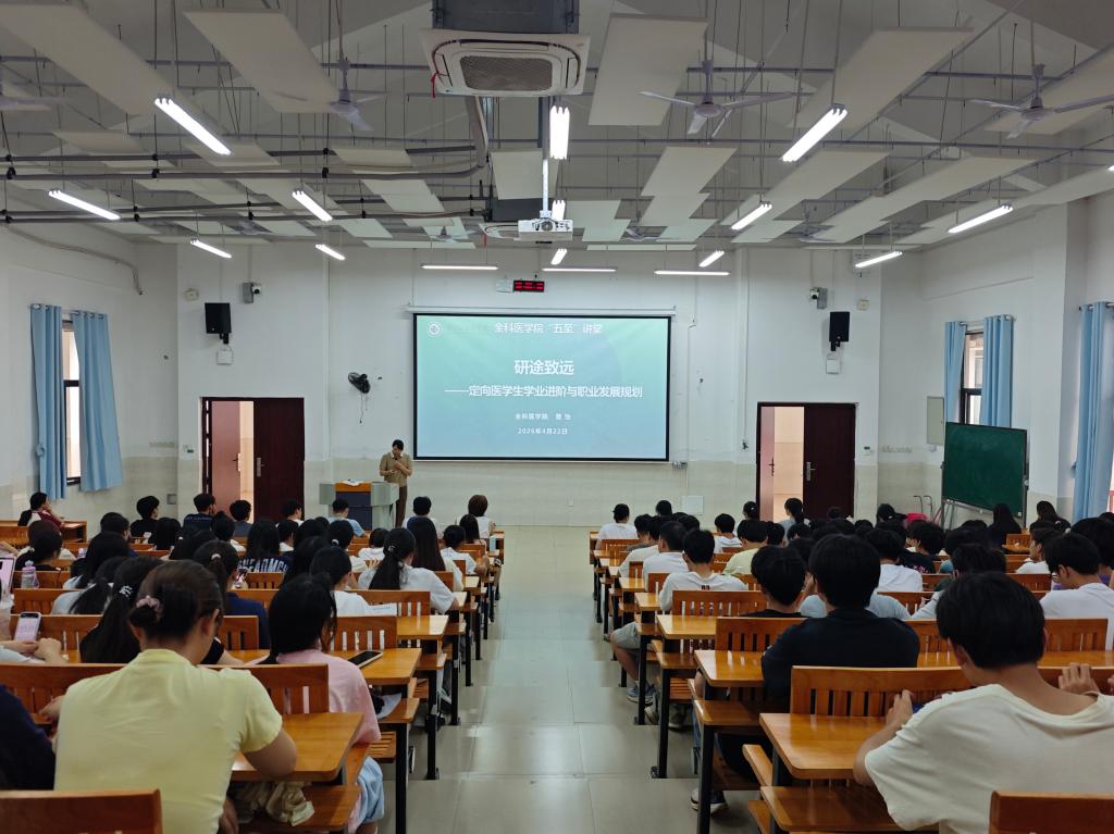 为扎实推进学风建设,帮助医学生夯实学业基础、明晰成长方向,4月22日,全科医学院在百东校区举办2026年第一期“五至”讲堂。本次培训面向大一、大二学生,重点聚焦低年级定向医学生的学业进阶与职业发展,由学院院长曾怡教授担任主讲。